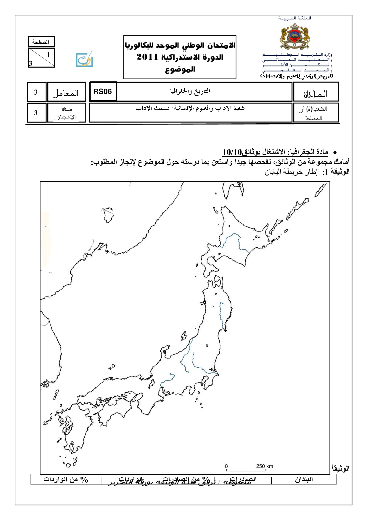 الإجتماعيات (شعبة الآداب) 2011 الدورة الإستدراكية - الموضوع