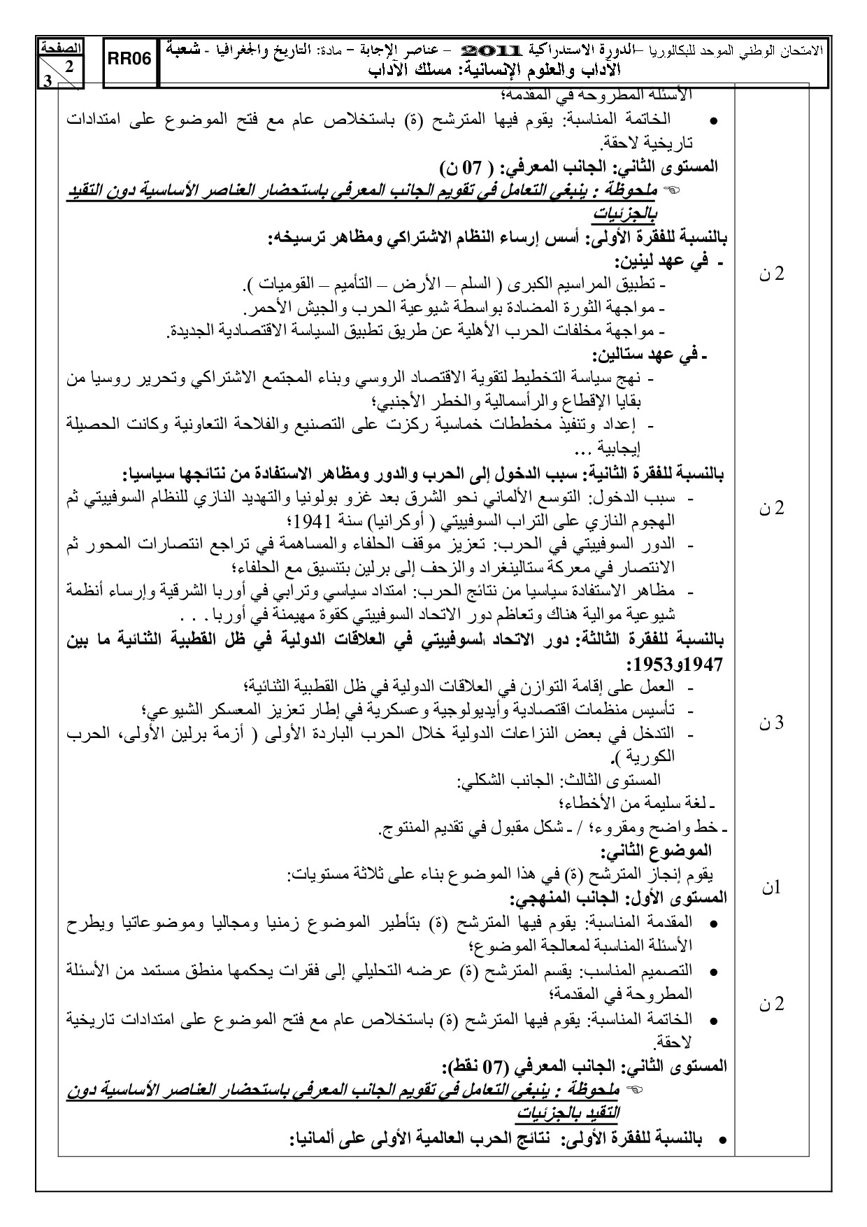 الإجتماعيات (شعبة الآداب) 2011 الدورة الإستدراكية - التصحيح