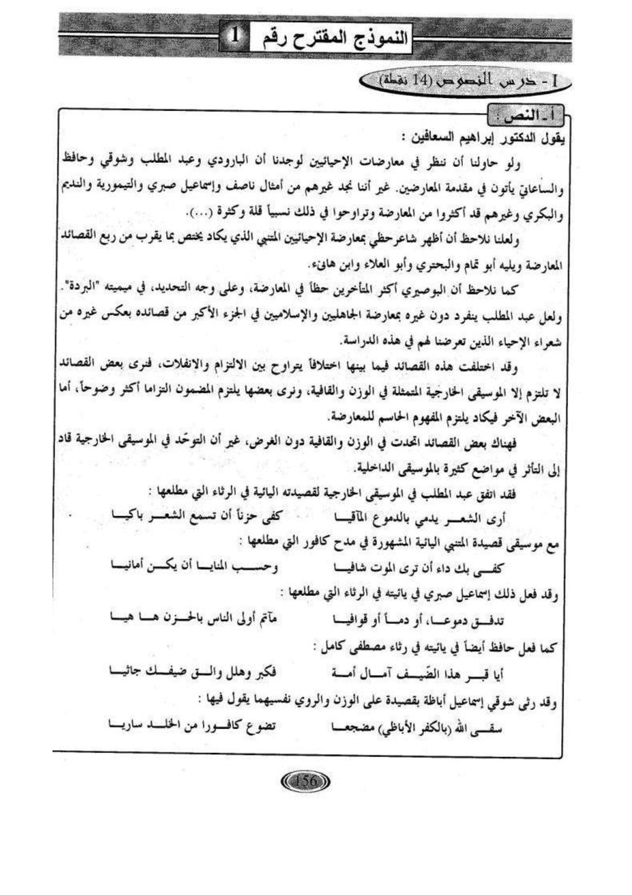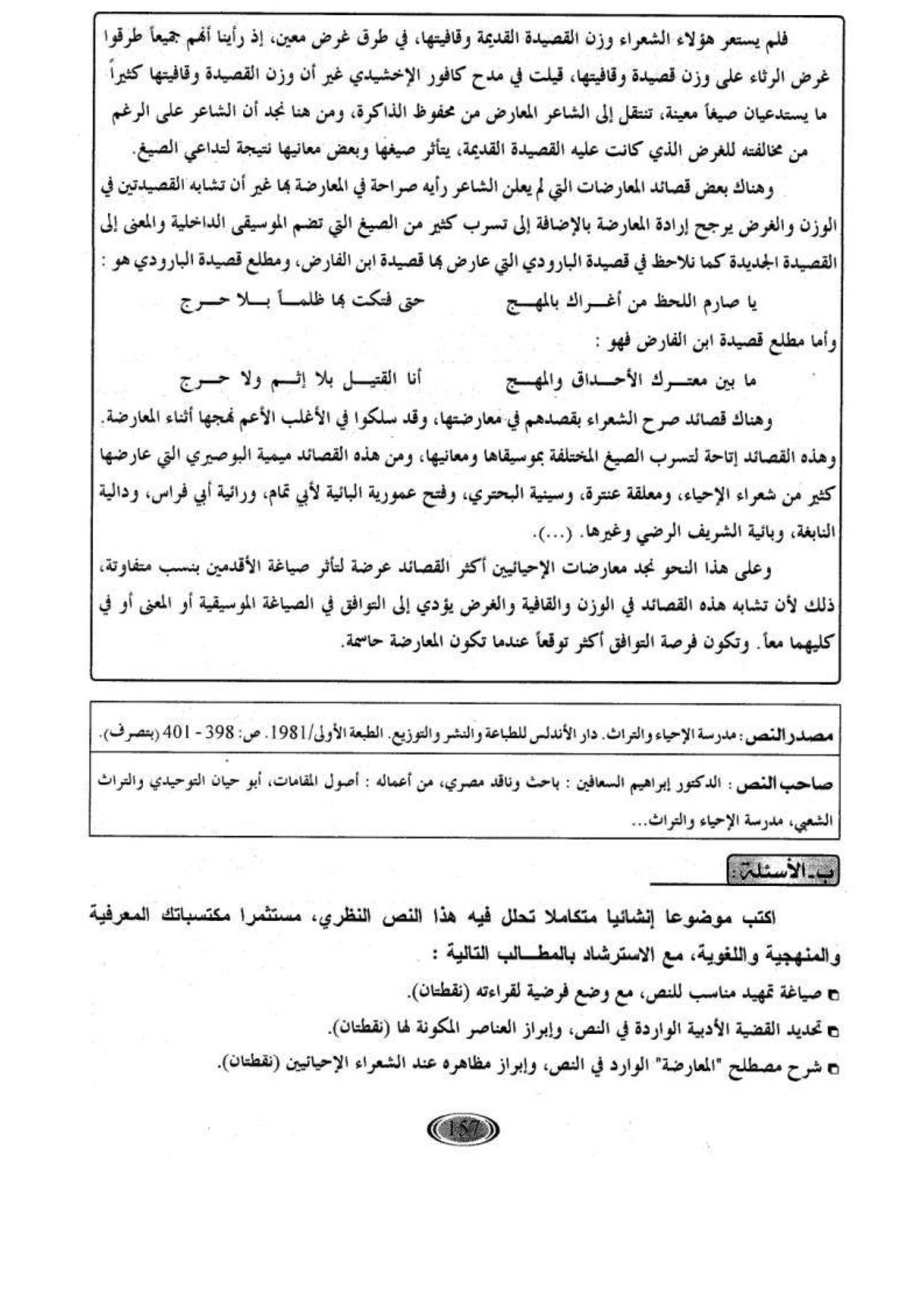 الفرض نموذج 1 - اللغة العربية ثانية باك آداب وعلوم إنسانية الدورة الأولى