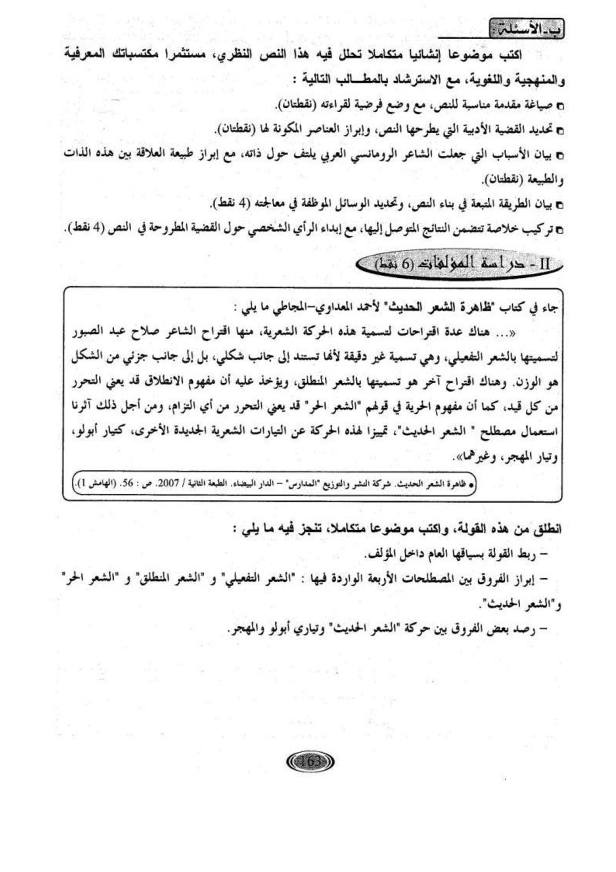 اللغة العربية: الثانية باك علوم إنسانية