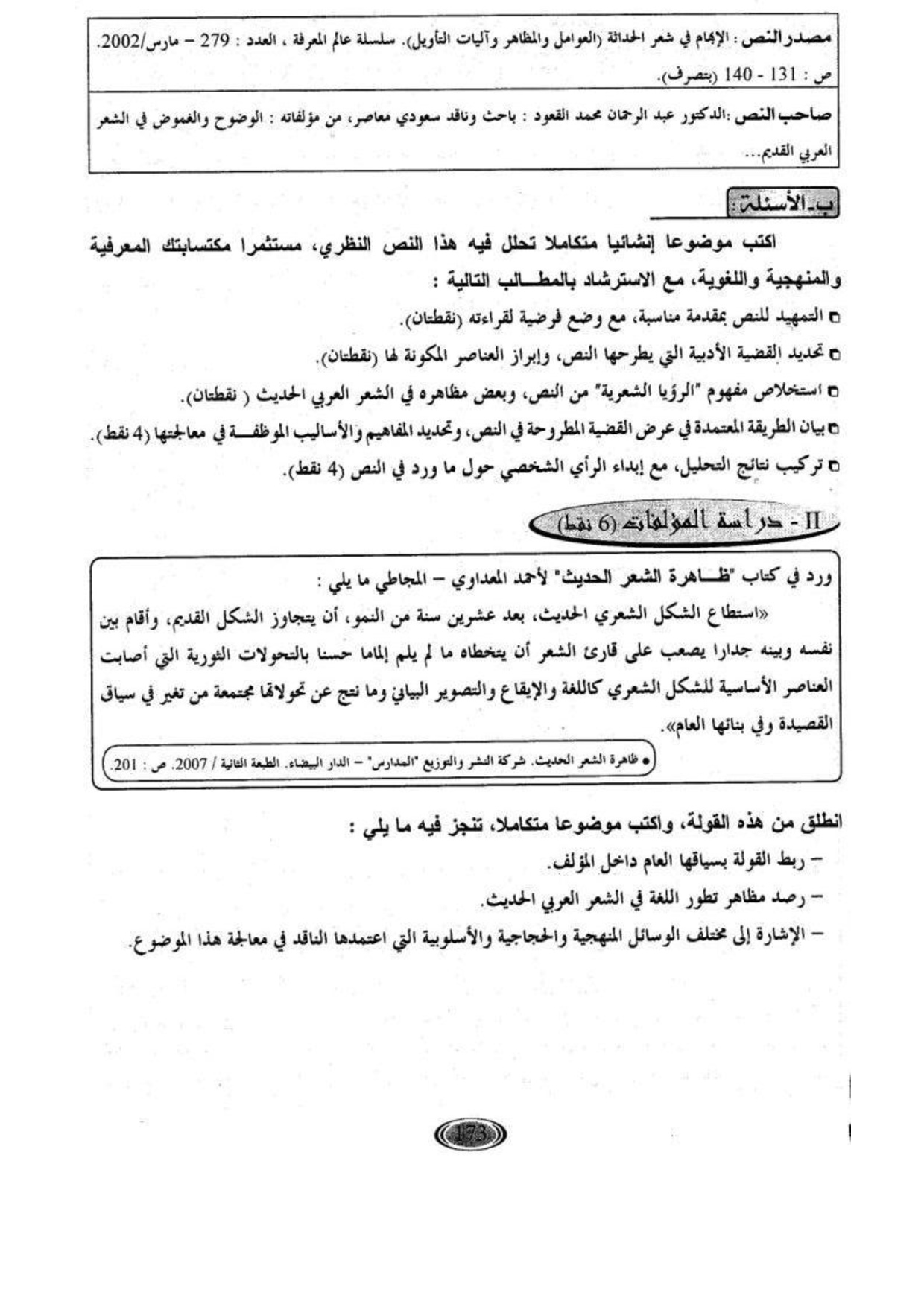 الفرض نموذج 4 - اللغة العربية ثانية باك آداب وعلوم إنسانية الدورة الأولى
