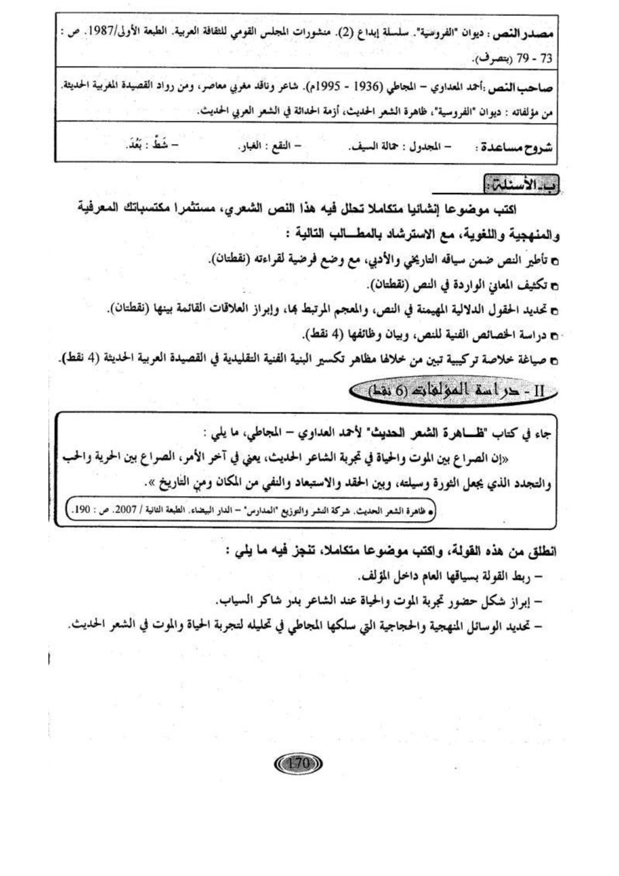 الفرض نموذج 3 - اللغة العربية ثانية باك آداب وعلوم إنسانية الدورة الثانية
