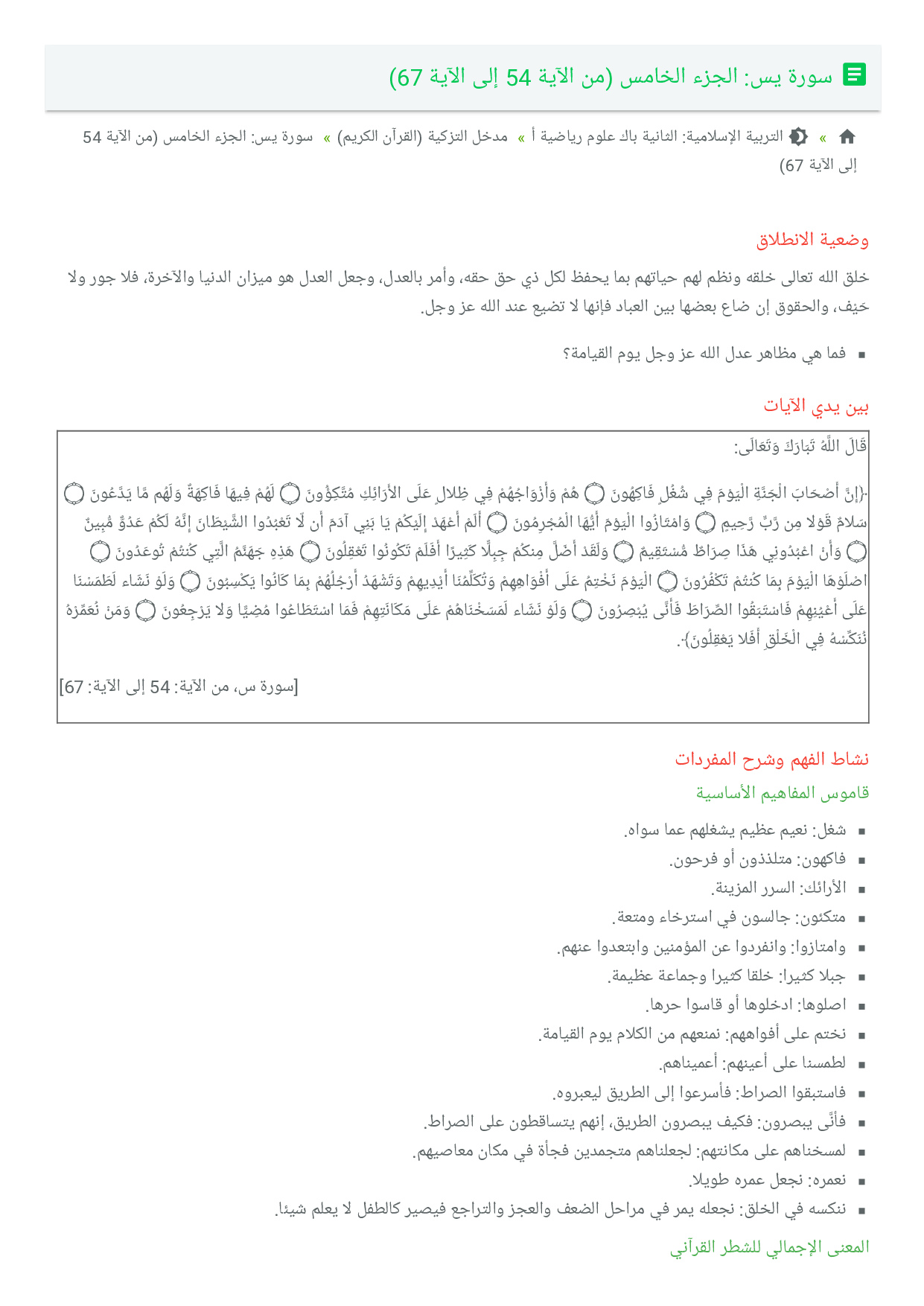 سورة يس الجزء الخامس (من الآية 54 إلى الآية 67)