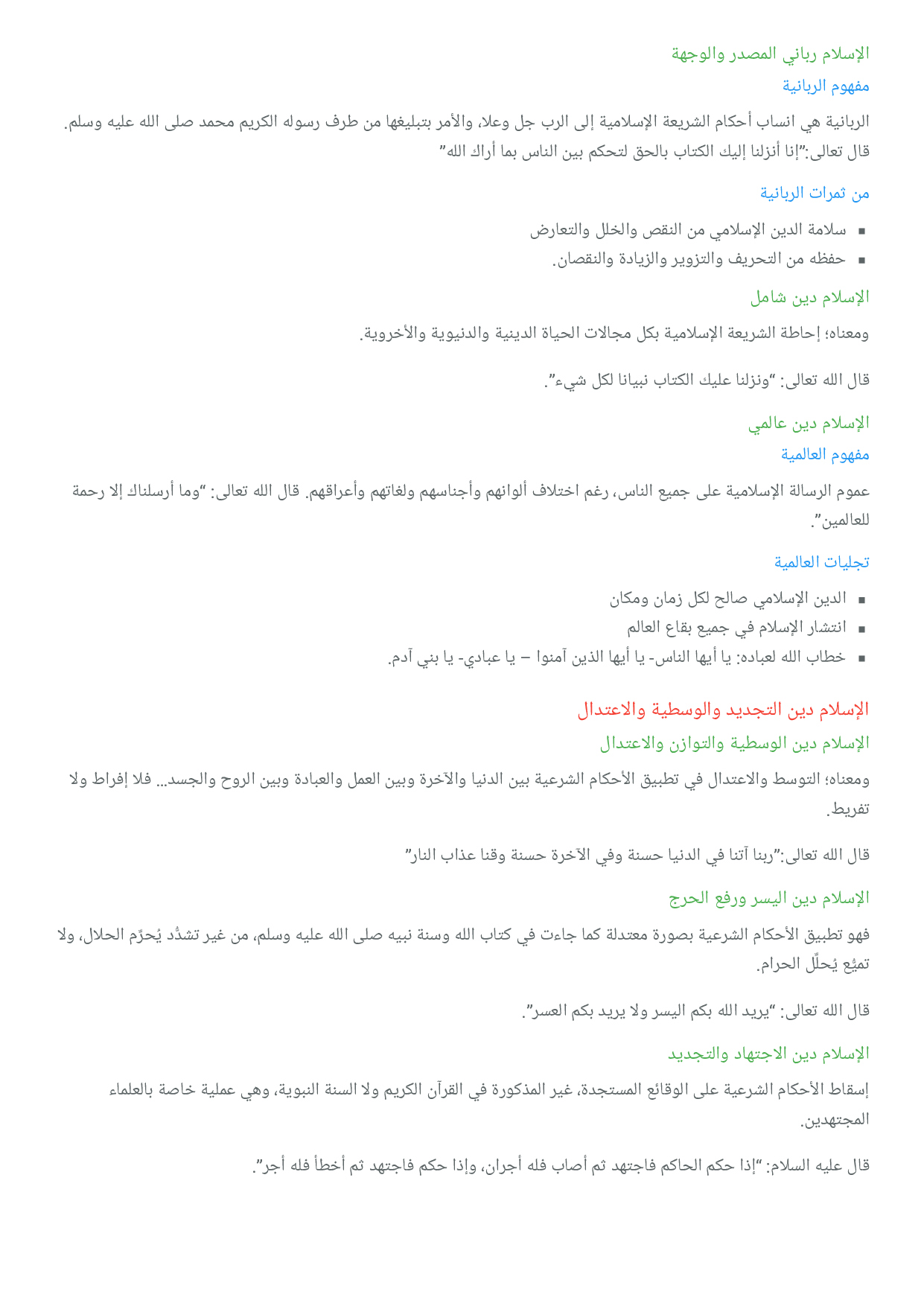 التربية الإسلامية: الثانية باك علوم إنسانية