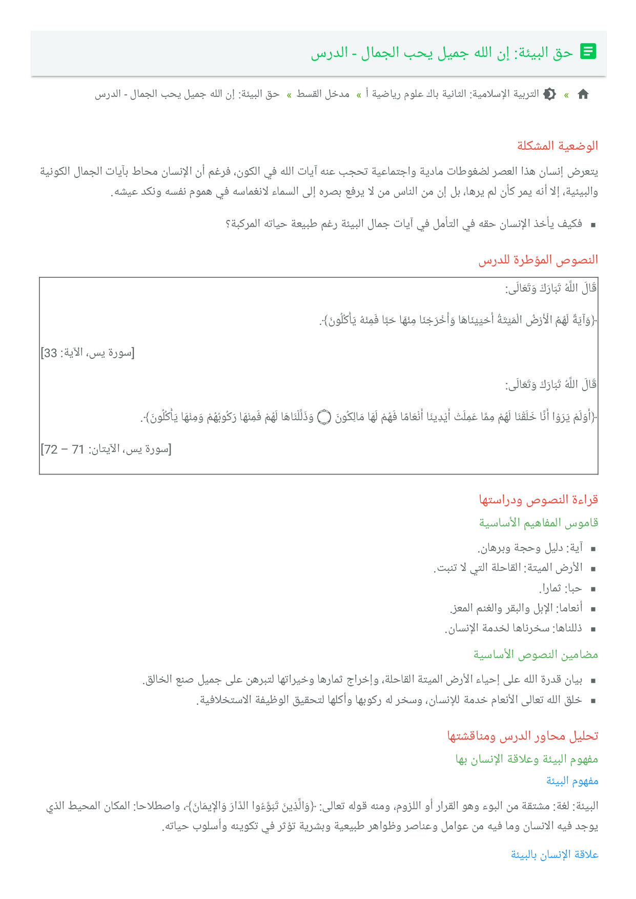 حق البيئة إن الله جميل يحب الجمال - الدرس