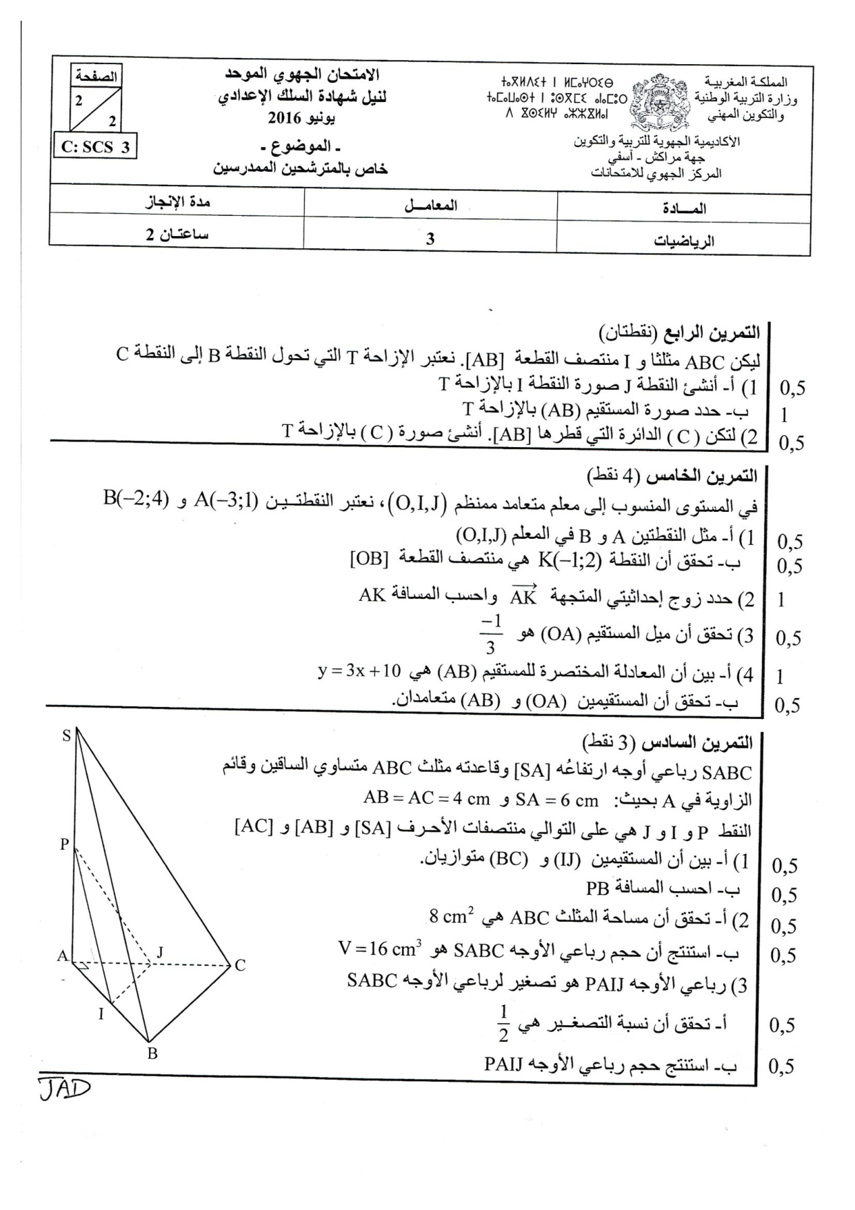 الرياضيات: الثالثة إعدادي