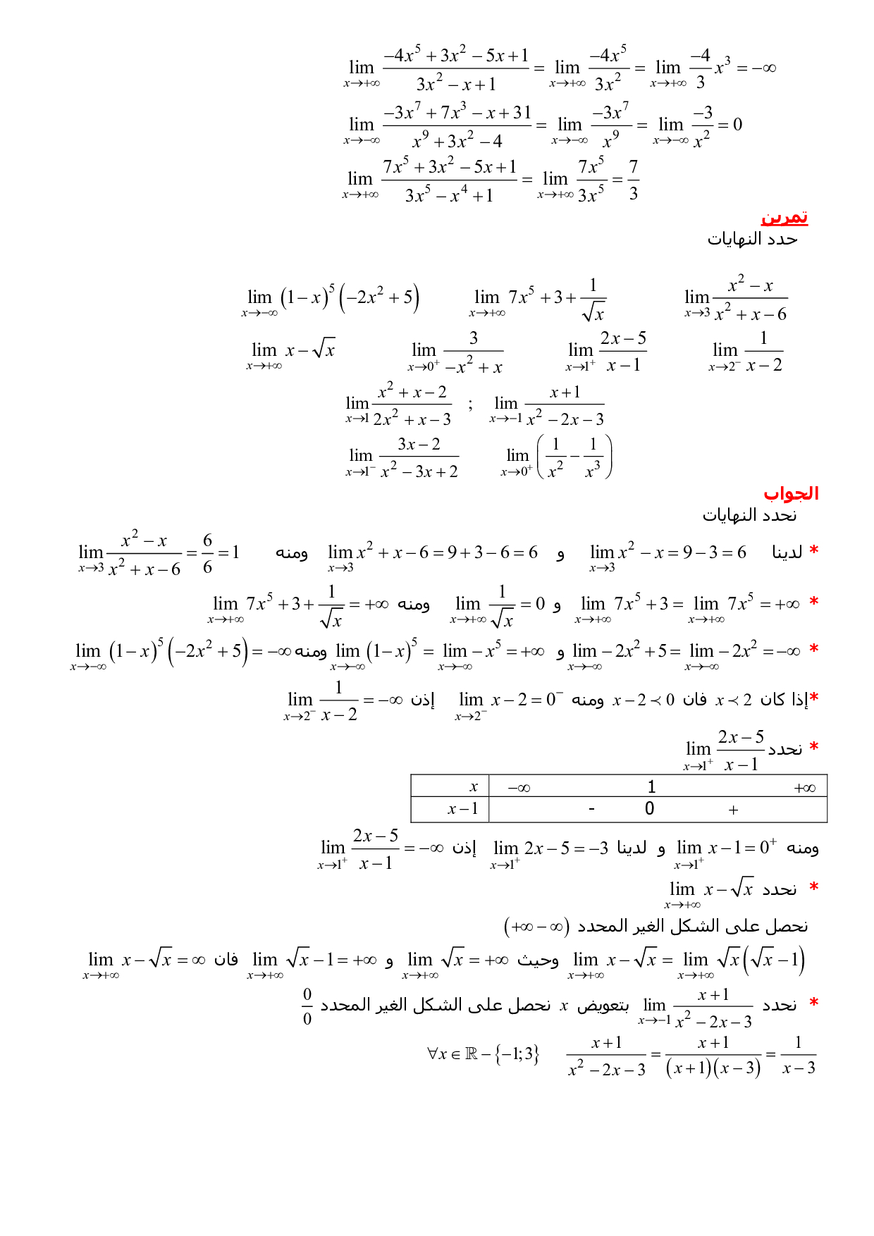نهاية دالة عددية - الدرس 2