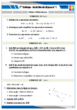 Devoir 1 Modèle 6 - Mathématiques 1AC Semestre 2