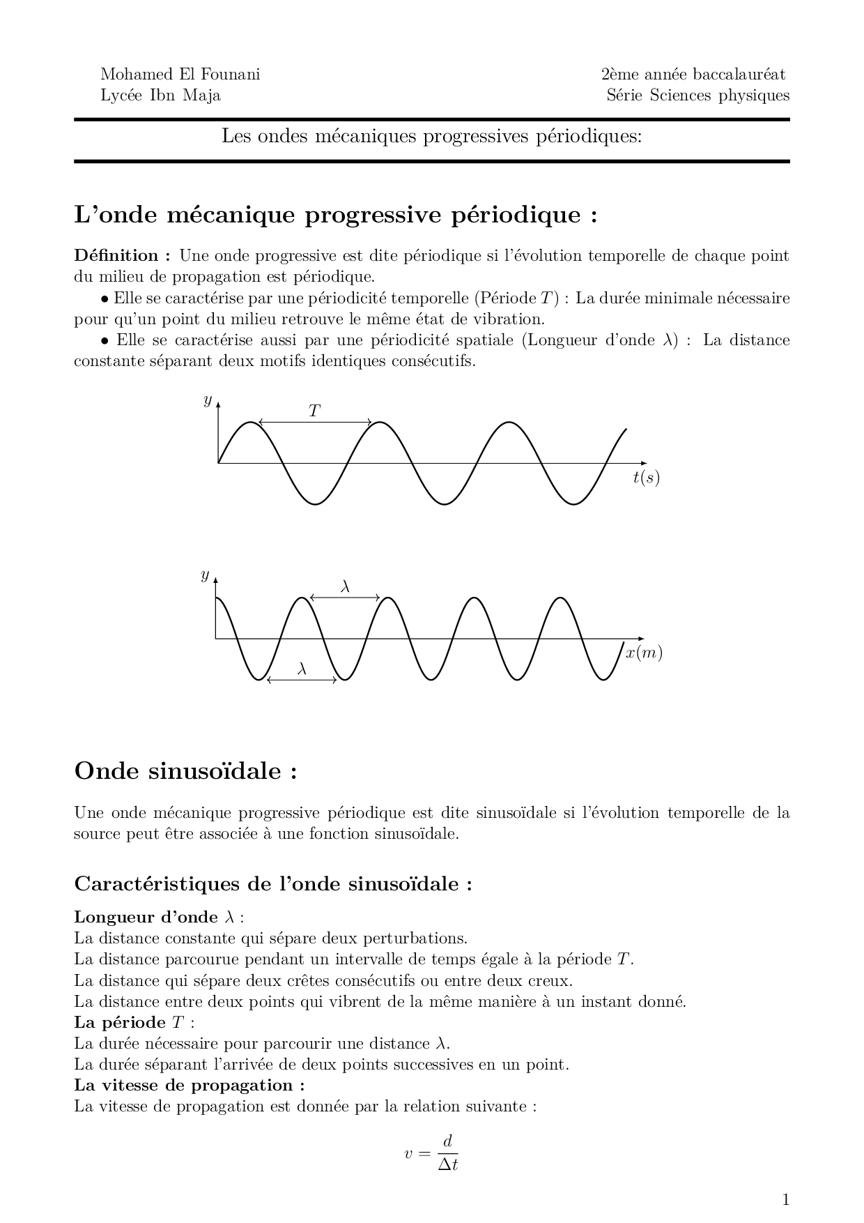 Ondes mécaniques progressives périodiques - Cours (LaTex)