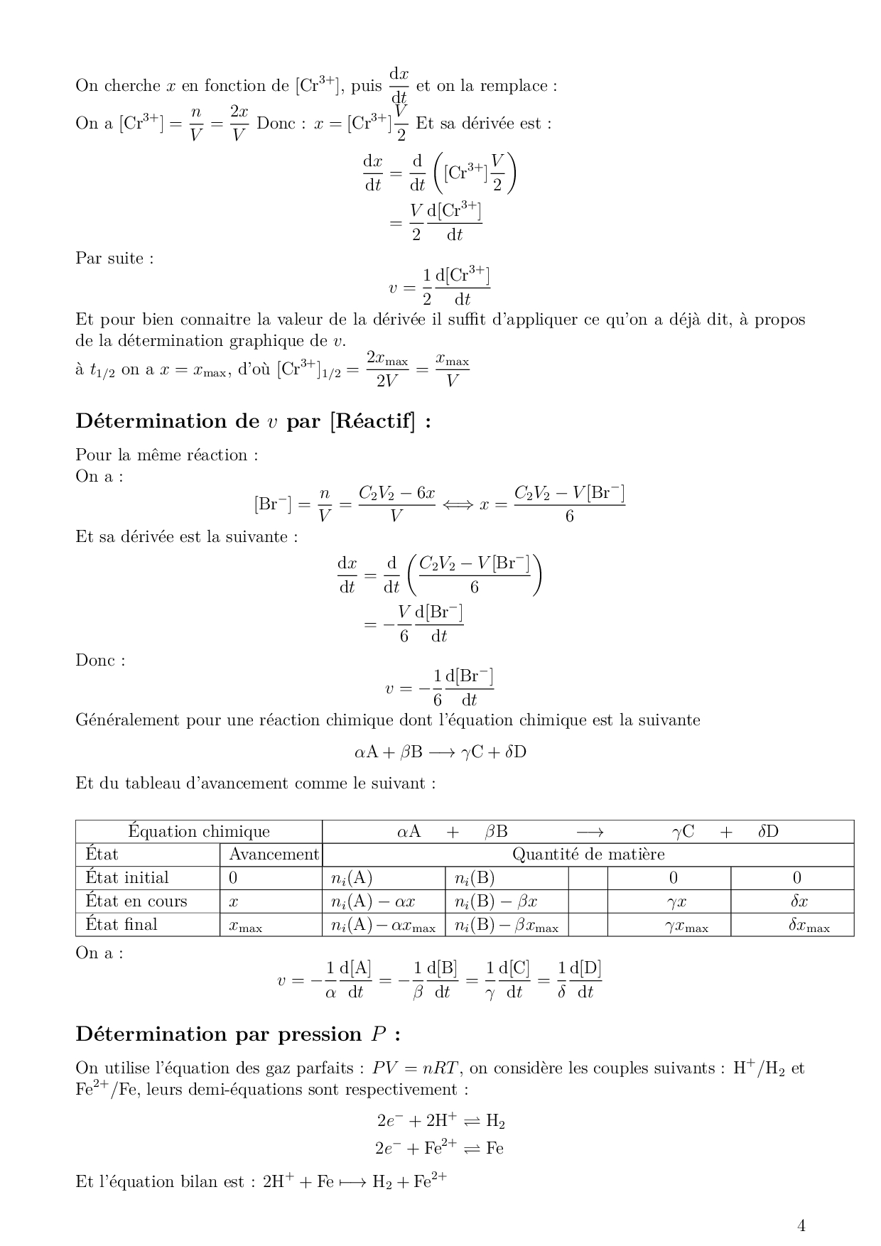 Suivi temporel d'une transformation chimique - Vitesse de réaction - Cours (LaTex)