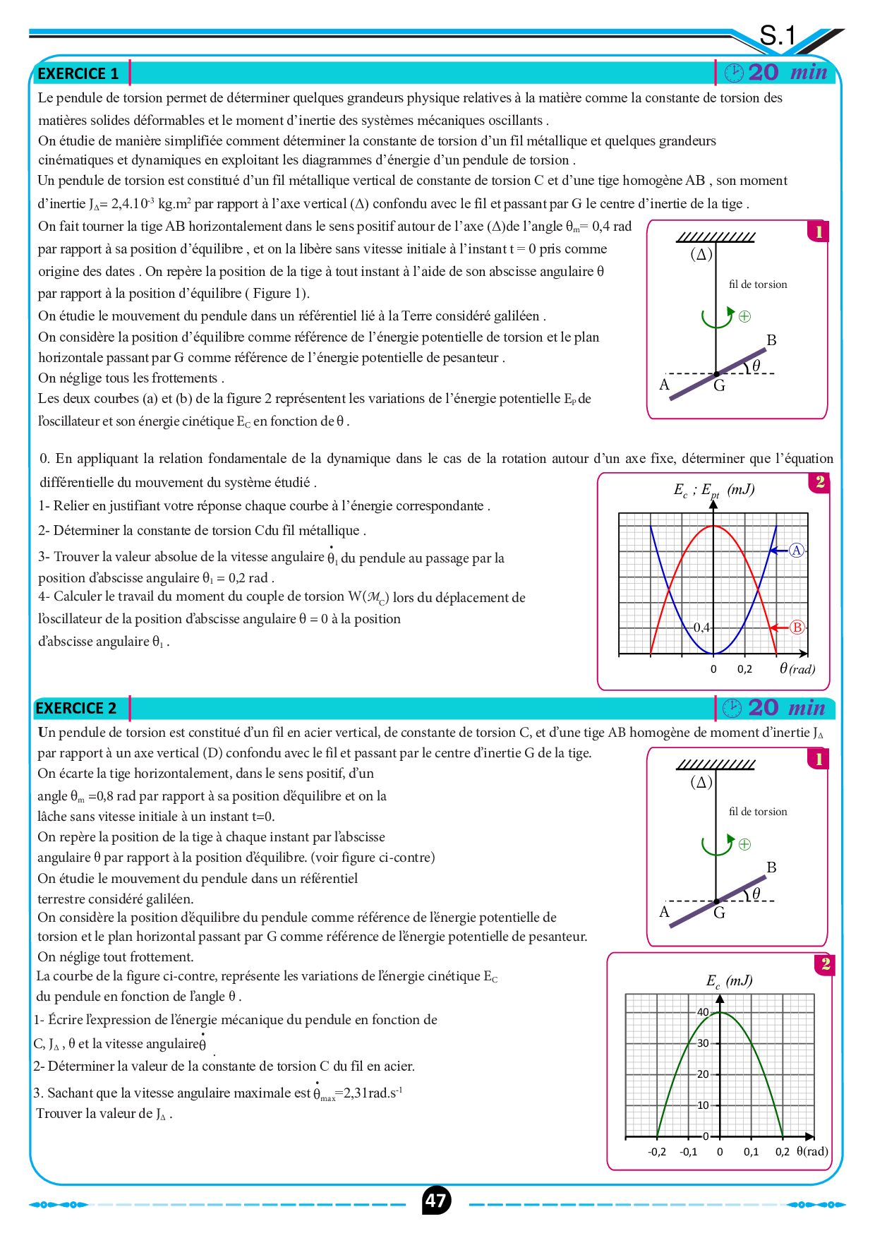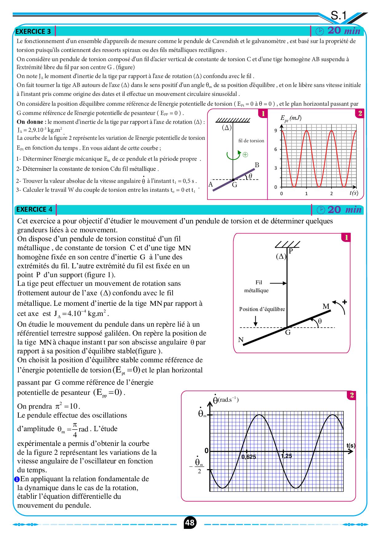 Pendule de torsion - Exercices non corrigés 3