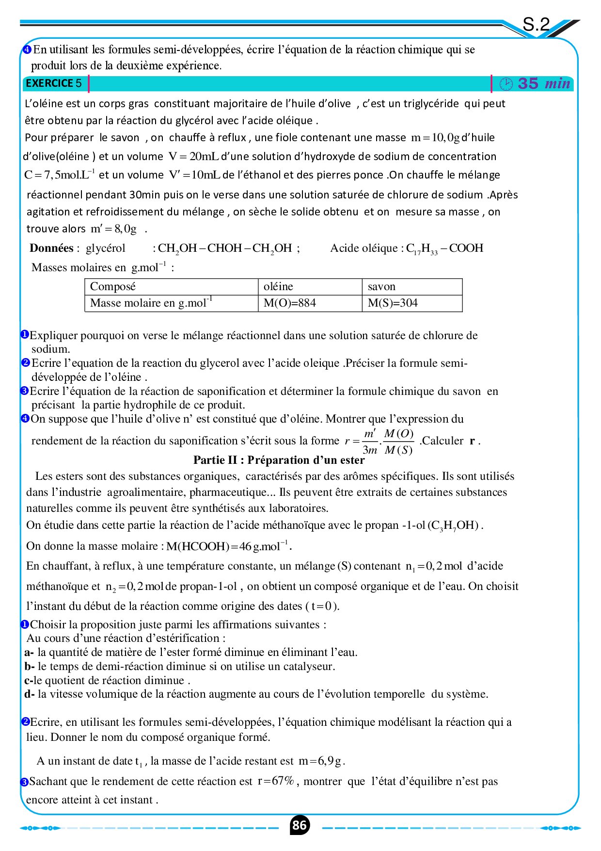 Réactions d'estérification et d'hydrolyse - Exercices non corrigés 5