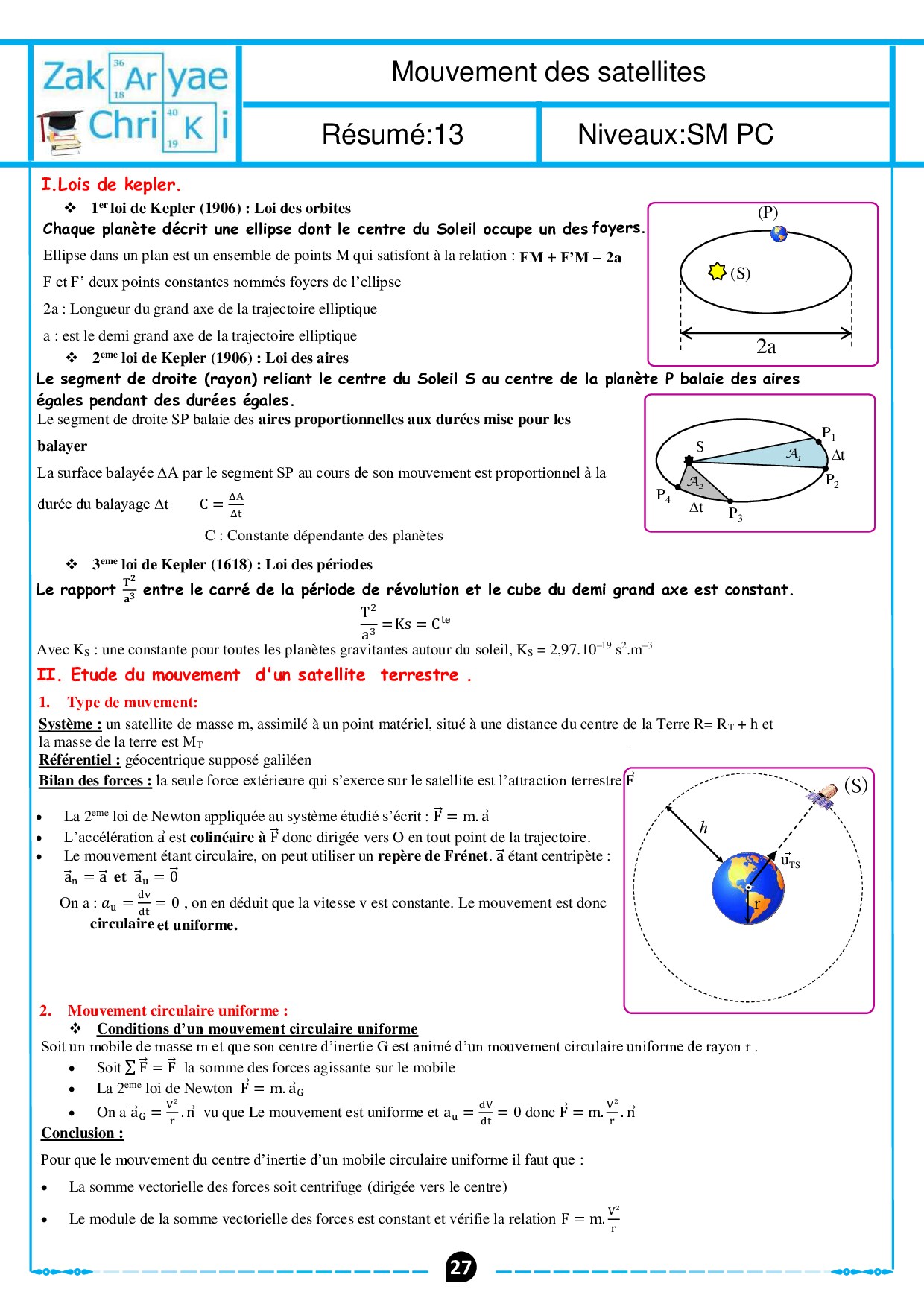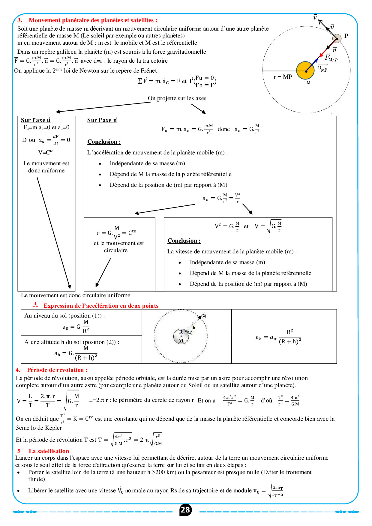 Mouvement des satellites et des planètes - Résumé de cours 2