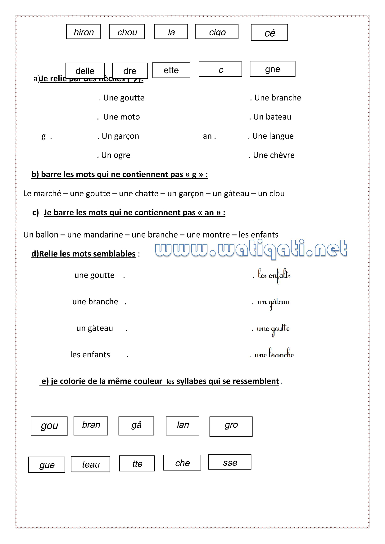 Devoir 1 Modèle 4 - Français 3ème Primaire Semestre 1