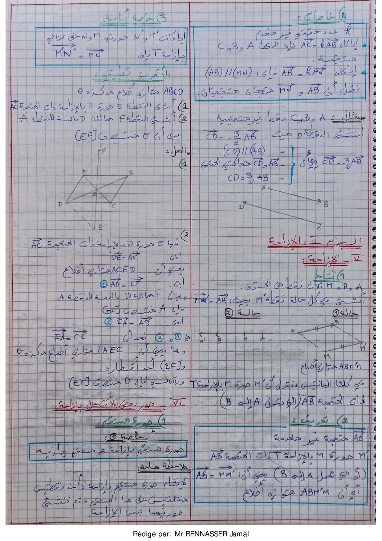 المتجهات والإزاحة - درس مكتوب بخط اليد