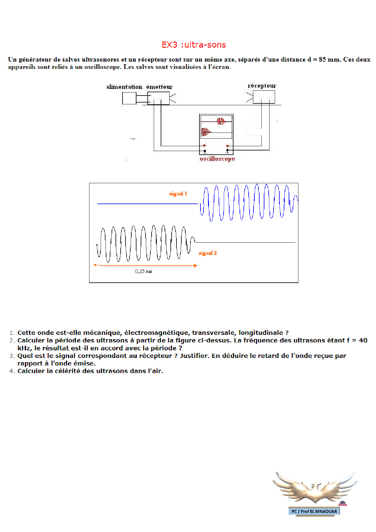 Ondes mécaniques progressives périodiques - Exercices non corrigés 13