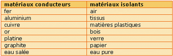 3- Quels sont les matériaux conducteurs ?