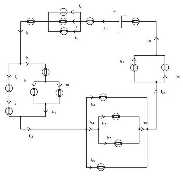 Dans un circuit avec dérivations, l’intensité du courant dans la branche principale est égale à la somme des intensités des courants dans les branches dérivées.