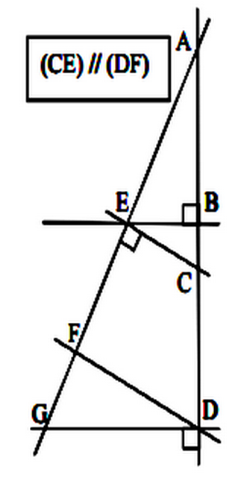 Lorsque deux droites sont parallèles, toute perpendiculaire à l’une est perpendiculaire à l’autre.