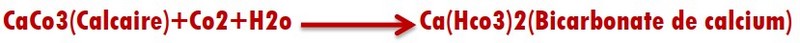 Dans la nature, l'eau, riche en dioxyde de carbone, est donc capable de dissoudre le calcaire.