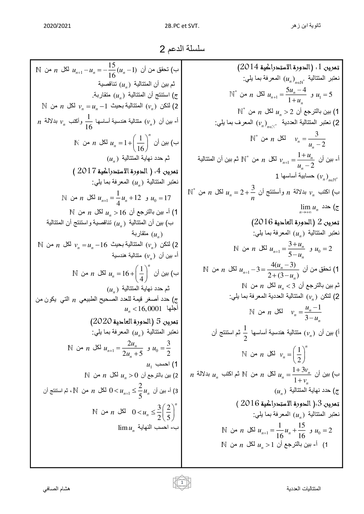 المتتاليات العددية - تمارين الامتحانات الوطنية