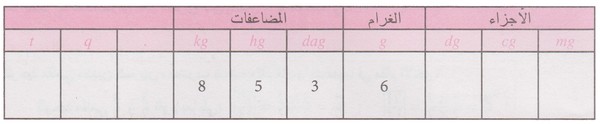جدول التحويلات يبين العلاقة بين وحدات الكتلة: |