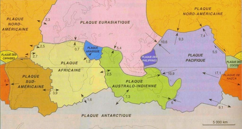 Les plaques se déplacent de quelques centimètres par an, on observe des mouvements de rapprochement ou d'éloignement entre les plaques.