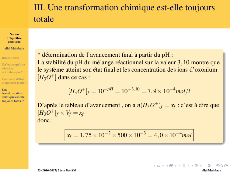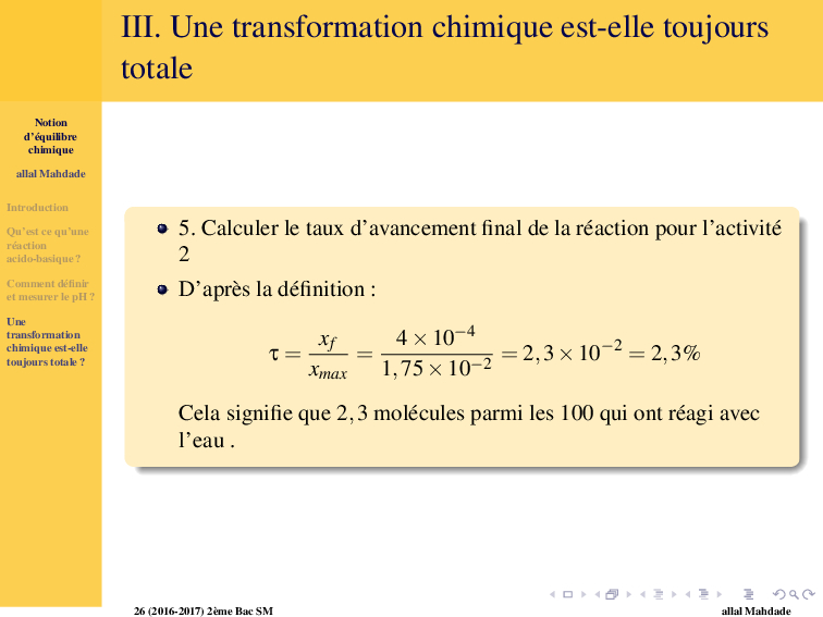 Transformations chimiques s'effectuant dans les 2 sens - Cours PPT