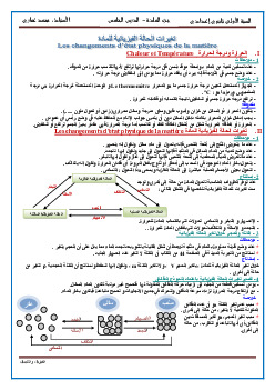 الحرارة وتغيرات الحالة الفيزيائية للمادة - ملخص الدرس 1