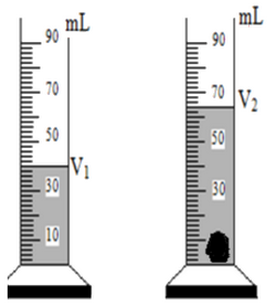 - Expérience 2 : pour déterminer son volume, il prend une éprouvette graduée et y verse un volume d’eau, il plonge l’objet délicatement dans l’eau et lis alors un volume .