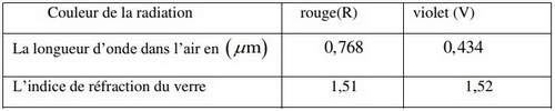 - Déterminer la valeur de la longueur de l'onde lumineuse durant sa propagation dans le prisme