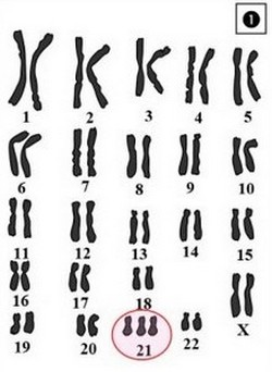 L’origine de cette trisomie est une fécondation entre un gamète possédant un chromosome 21 et un gamète possédant deux chromosomes 21.