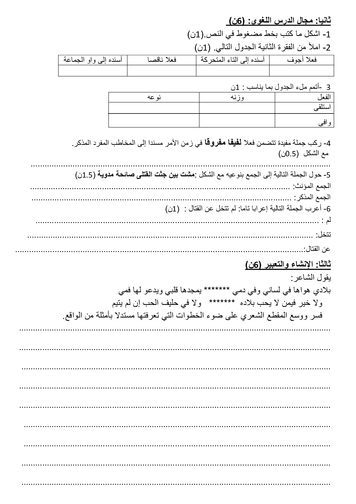 الفرض 2 نموذج 5 - اللغة العربية أولى إعدادي الدورة الأولى