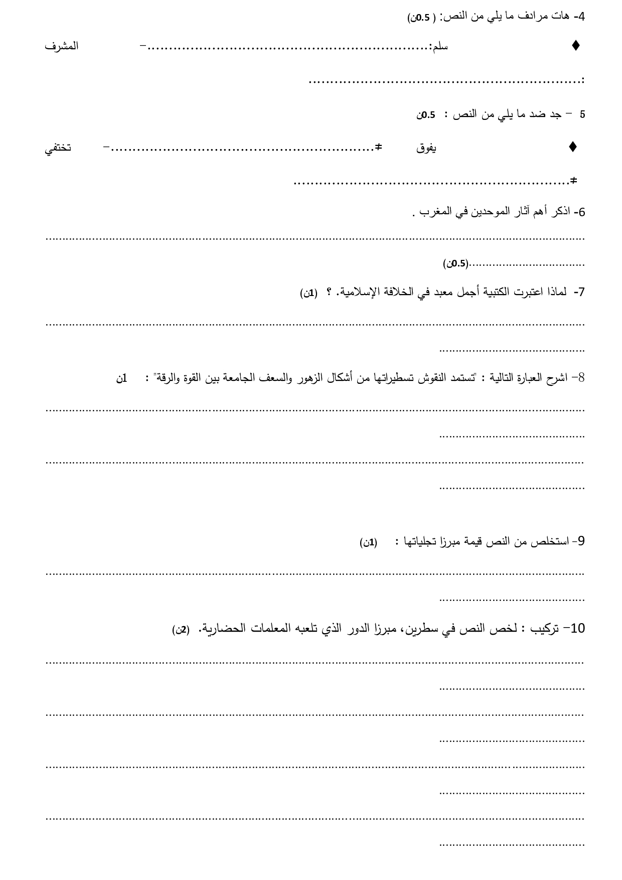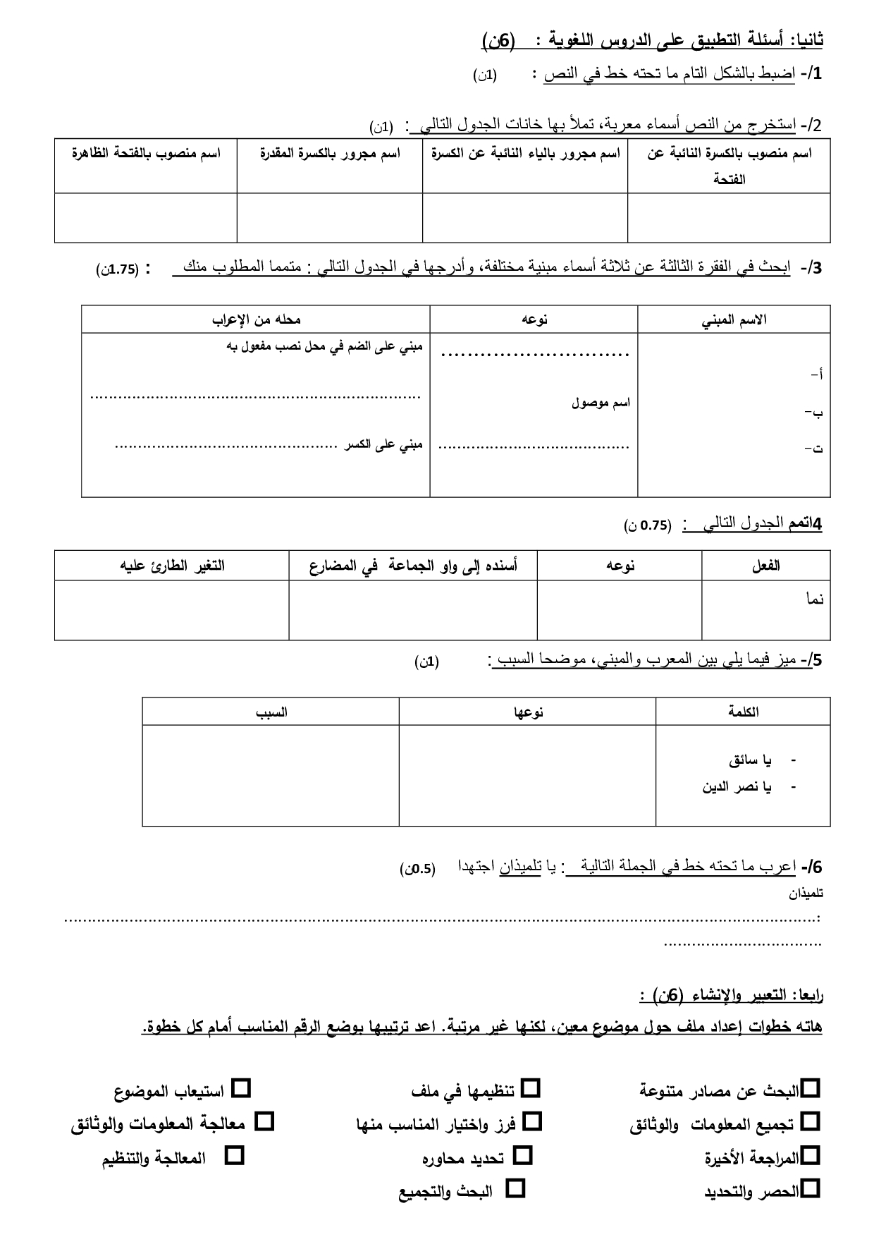 الفرض 3 نموذج 5 - اللغة العربية أولى إعدادي الدورة الأولى
