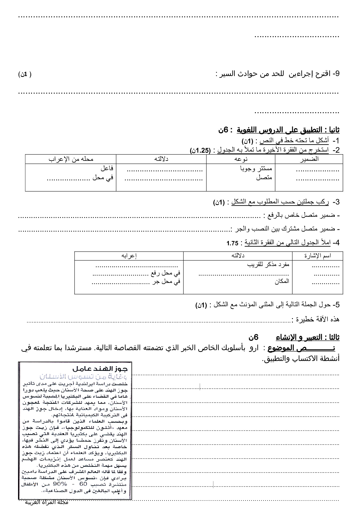 الفرض 2 نموذج 4 - اللغة العربية أولى إعدادي الدورة الثانية