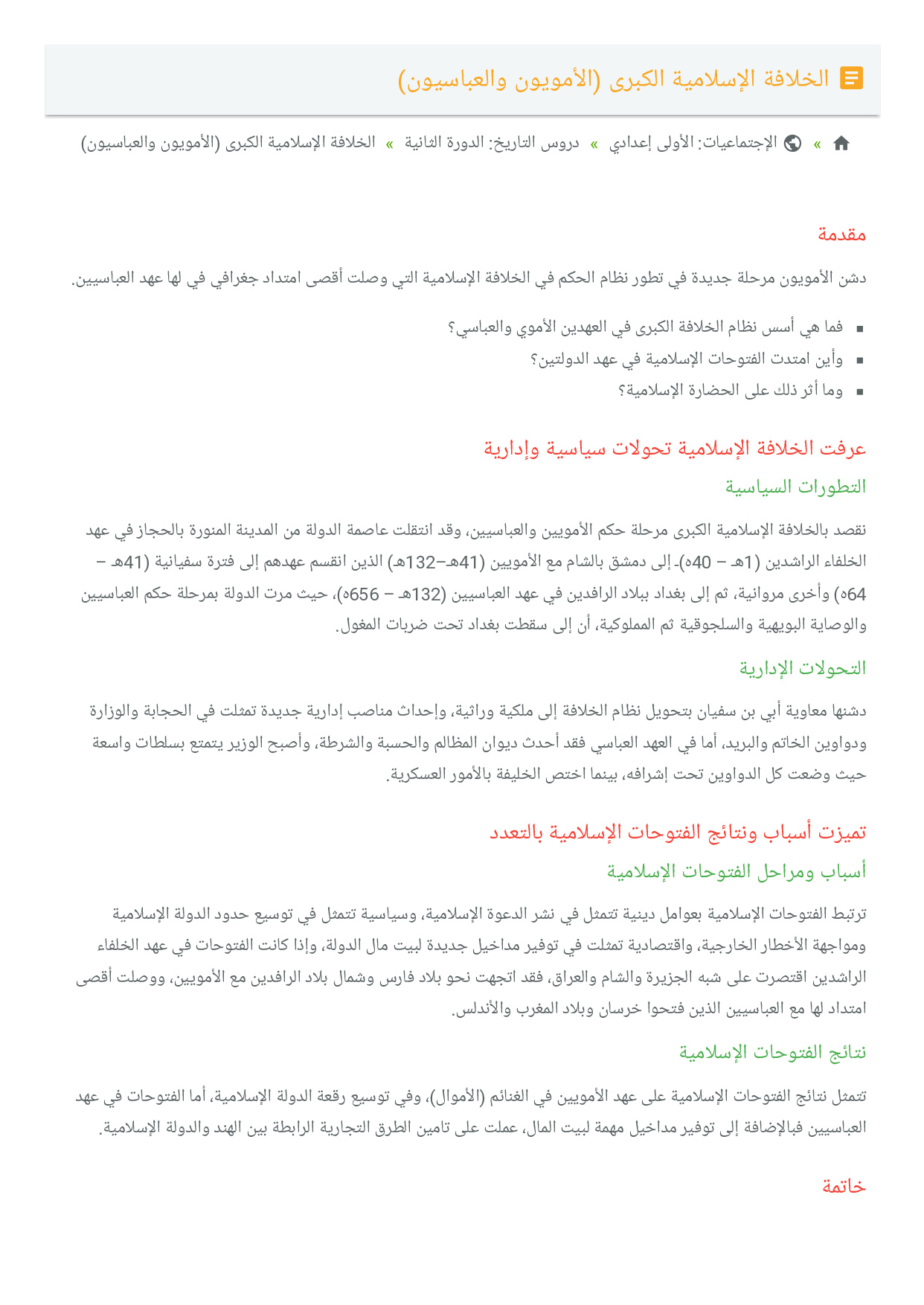 الإجتماعيات: الأولى إعدادي