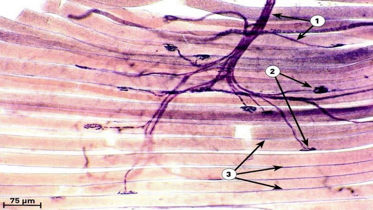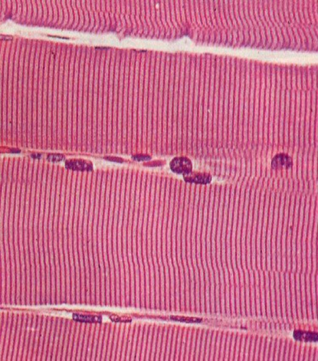 Chaque fibre musculaire est une cellule musculaire plurinucléé et géante de quelques mm à quelques cm de longueur.