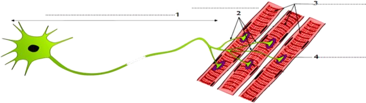 Un même neurone innerve plusieurs cellules musculaires formant une structure appelée unité motrice.