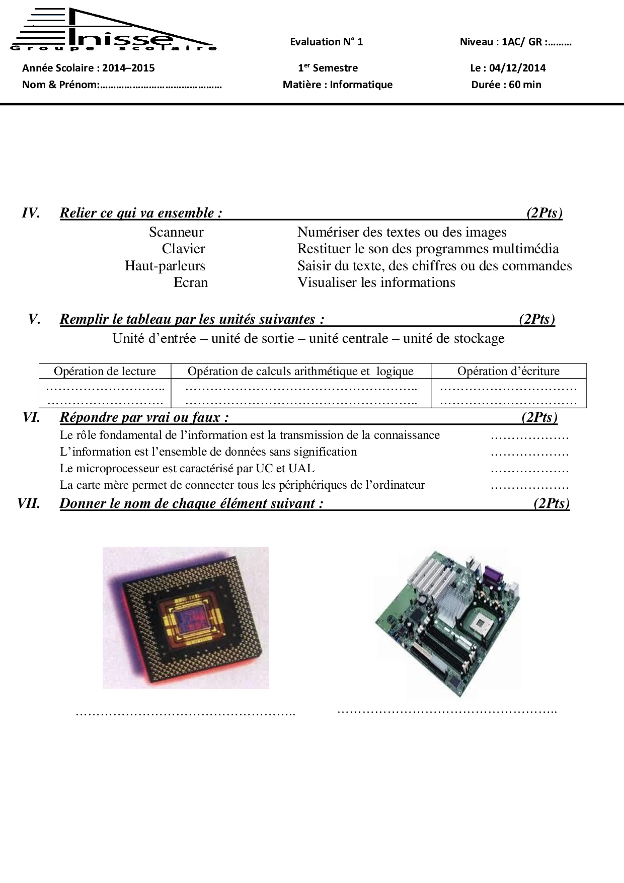 Informatique: 1ère Année Collège