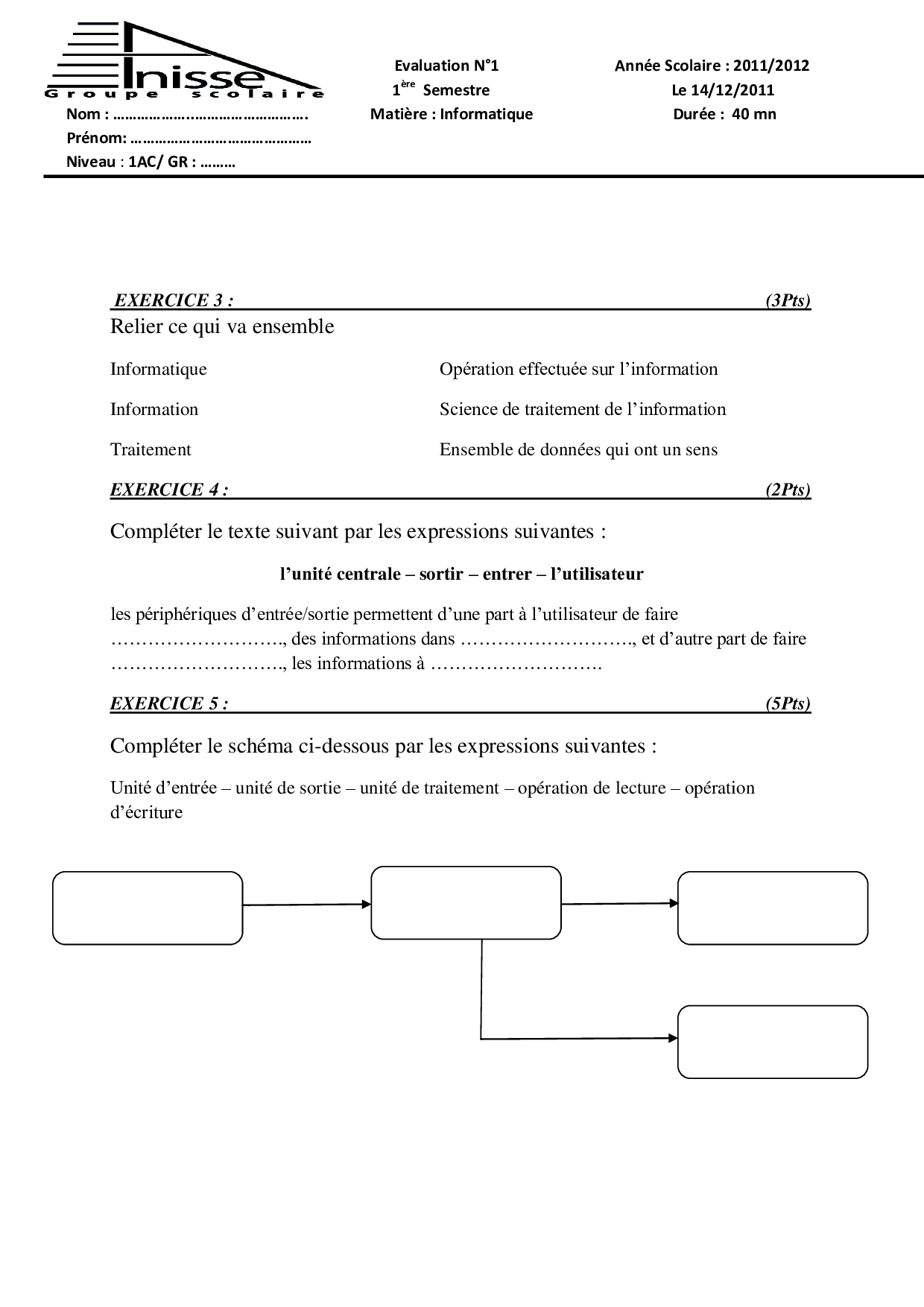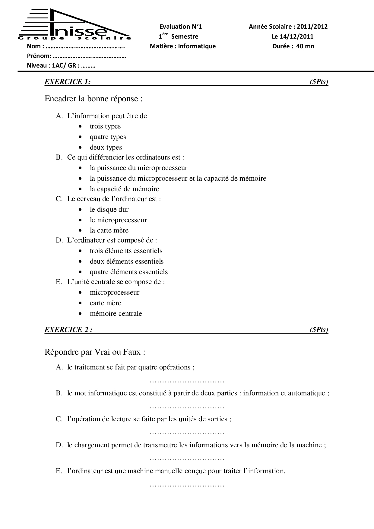 Devoir 1 Modèle 4 - Informatique 1AC Semestre 1