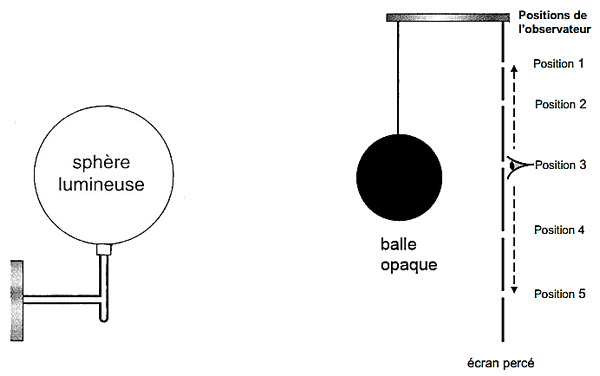 - Pour quelle(s) position(s) l’observateur voit-il partiellement la sphère lumineuse?