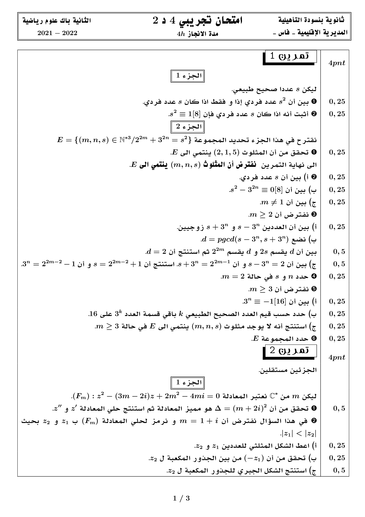 إمتحان تجريبي 16 - الرياضيات ثانية باك علوم رياضية