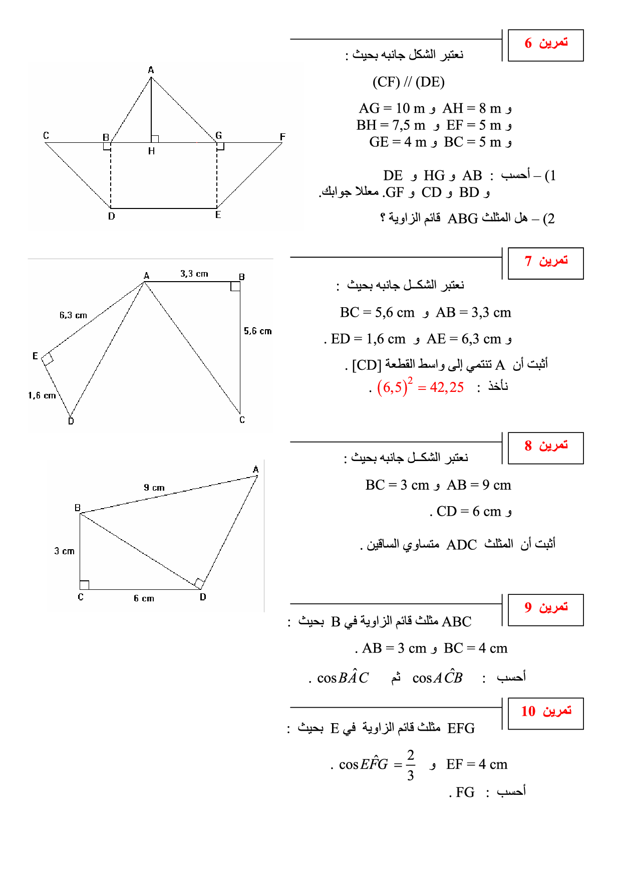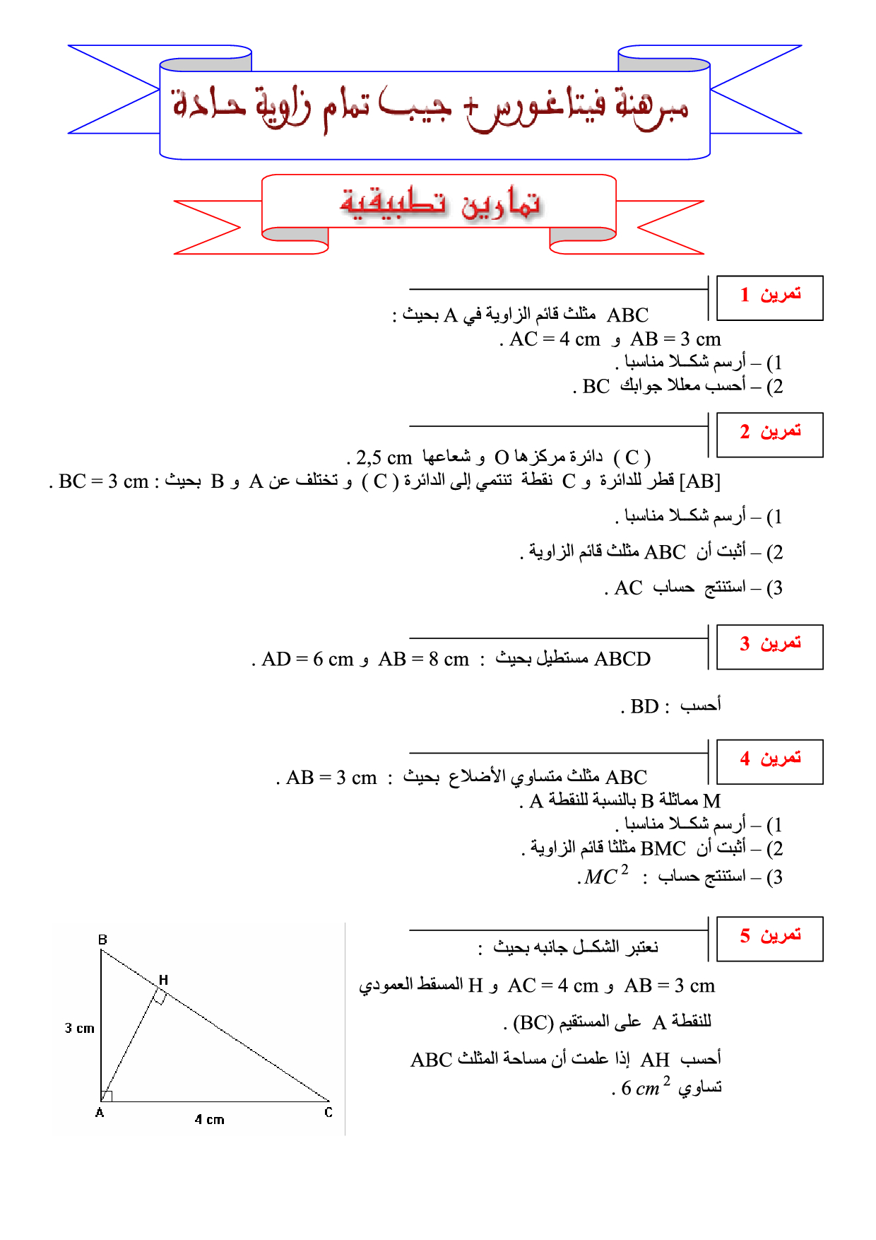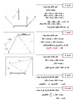مبرهنة فيتاغورس وجيب تمام زاوية حادة - تمارين تطبيقية