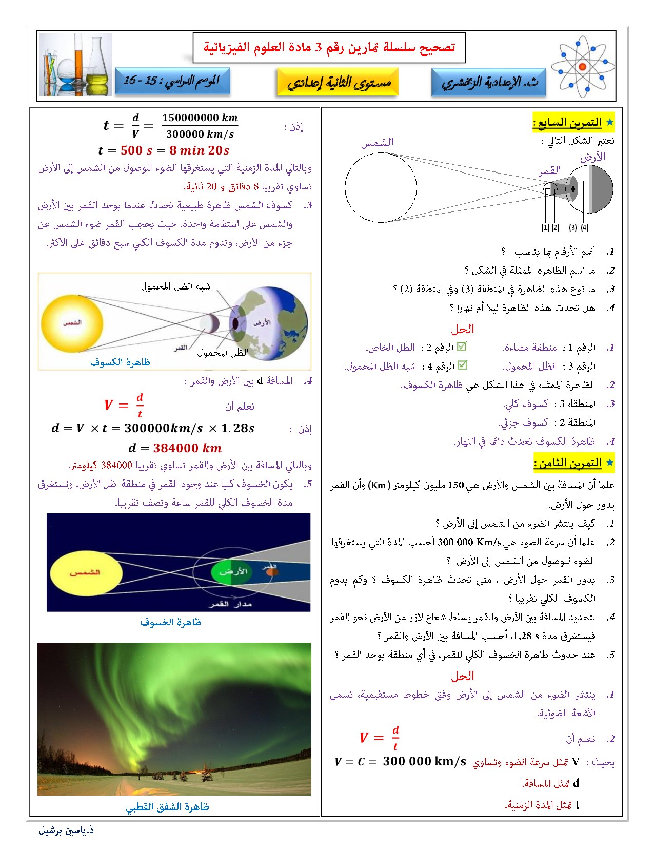 سلسلة تمارين الفيزياء والكيمياء ثانية إعدادي الدورة الثانية 1 - التصحيح