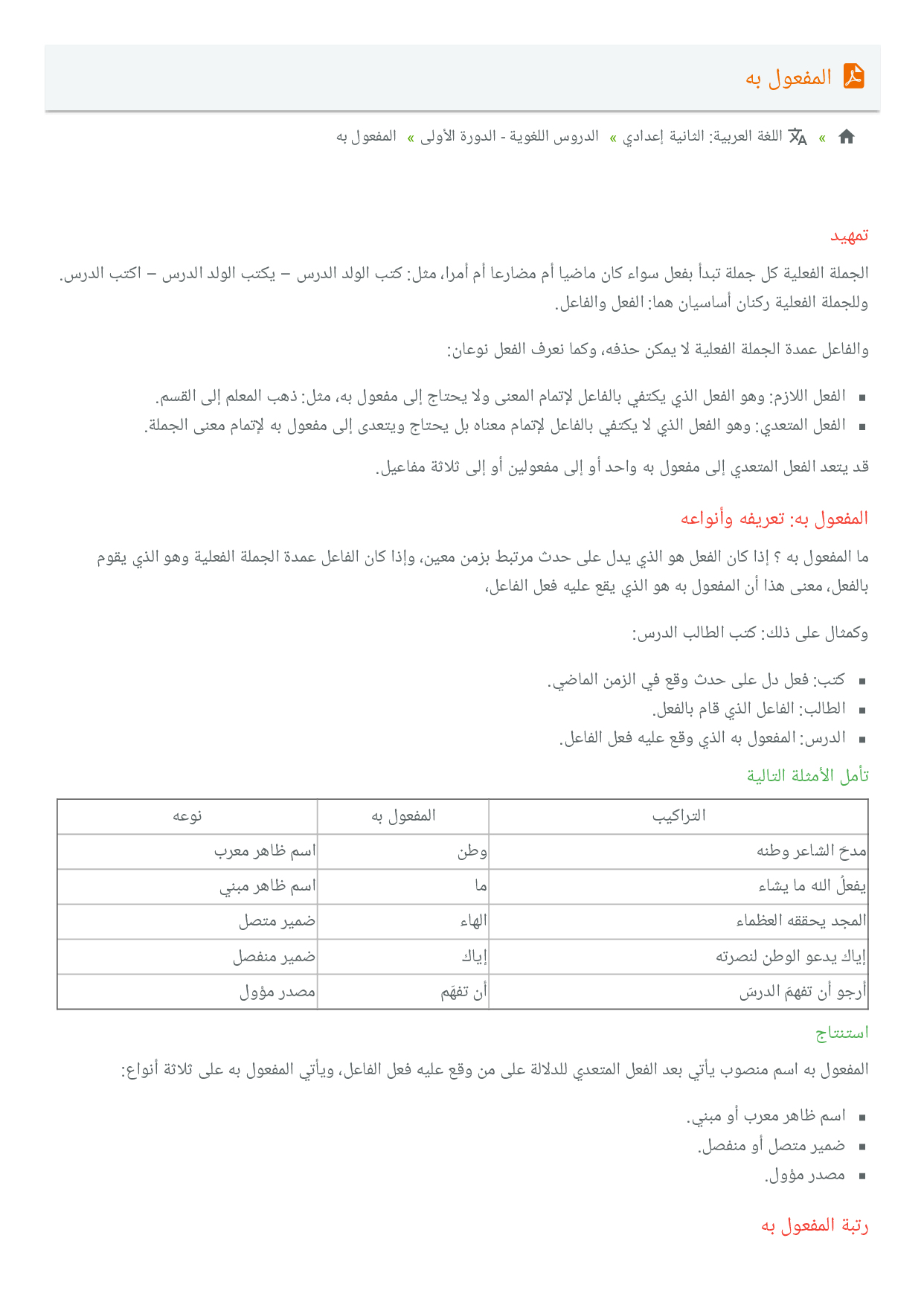 اللغة العربية: الثانية إعدادي