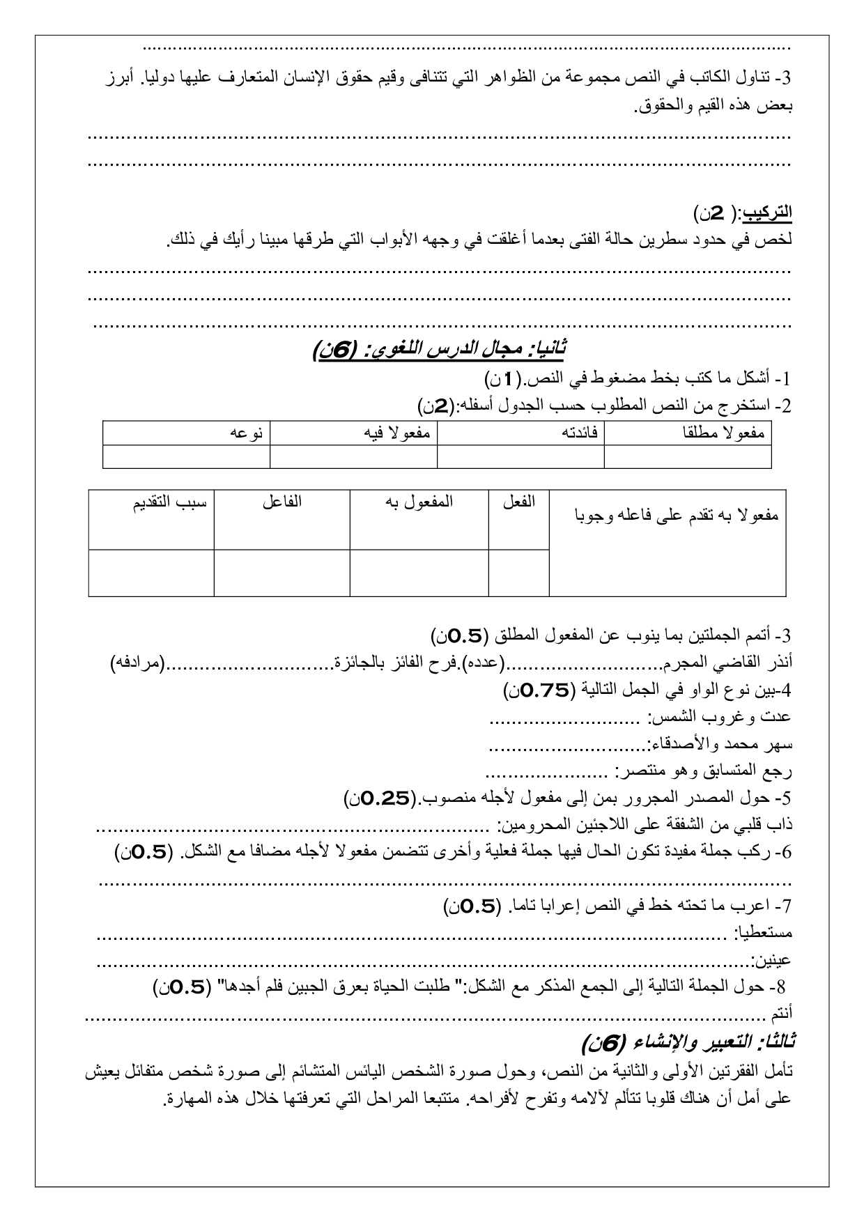الفرض 1 نموذج 6 - اللغة العربية ثانية إعدادي الدورة الثانية