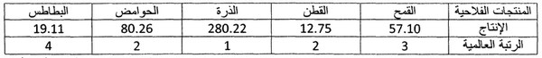 بعض المنتجات الفلاحية الأمريكية ومكانتها العالمية سنة 2005 (بمليون طن)