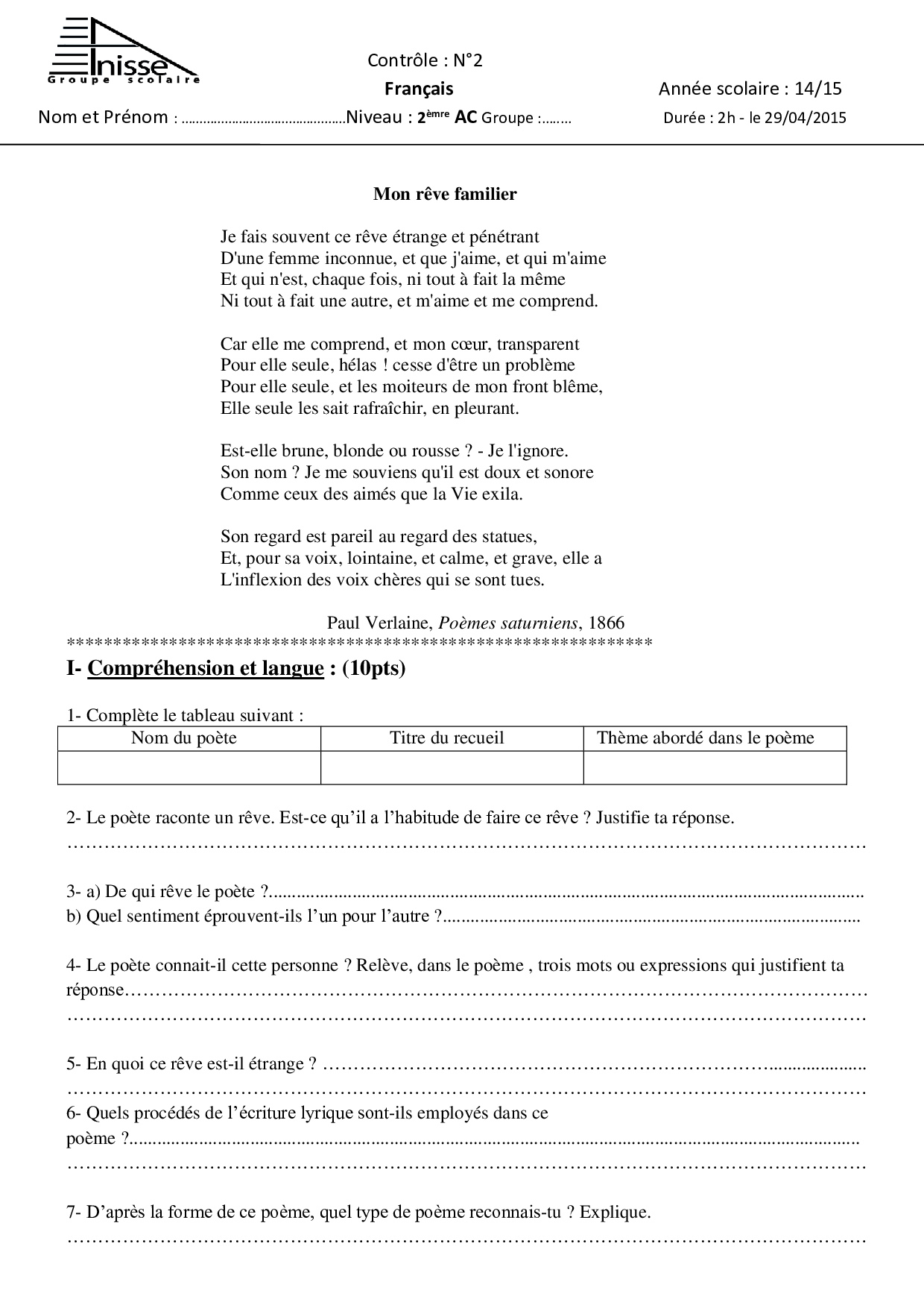 Devoir 2 Modèle 4 - Français 2AC Semestre 2