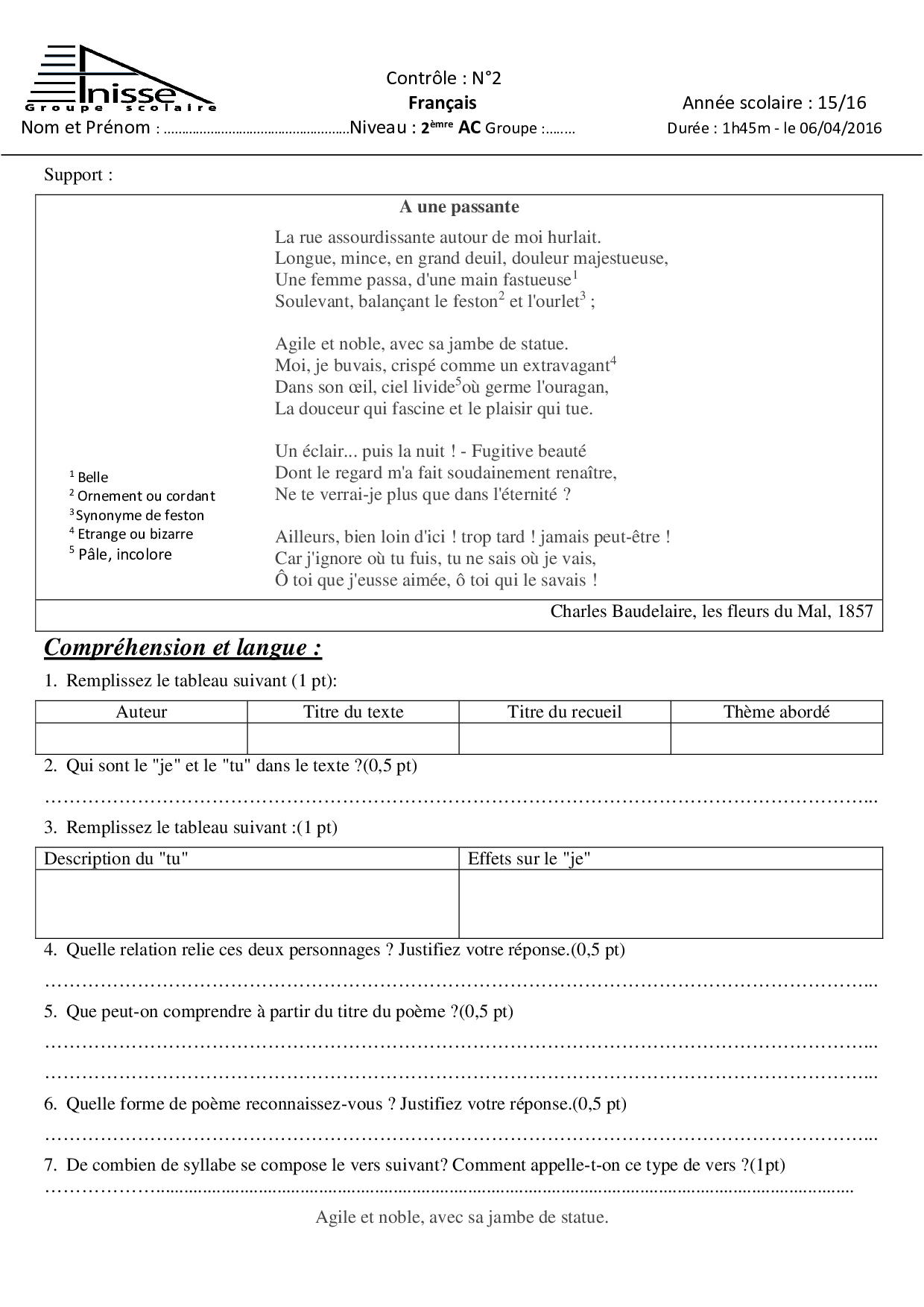 Français: 2ème Année Collège