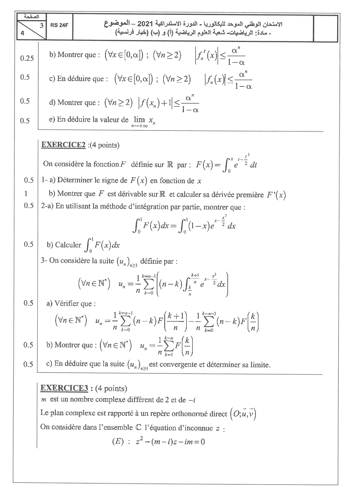 Examen National Mathématiques Sciences Maths 2021 Rattrapage - Sujet